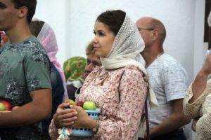 В завершение Божественной литургии, по церковному уставу было совершено освящение плодов нового урожая. Хор исполнил тропарь, кондак и величание праздника. Батюшка Александр прочитал молитвы и окропил плоды и молящихся освященной водой.