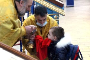В завершение праздничной службы отец Александр поблагодарил всех присутствующих за общую молитву, причастников поздравил с принятием Христовых Таин.