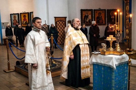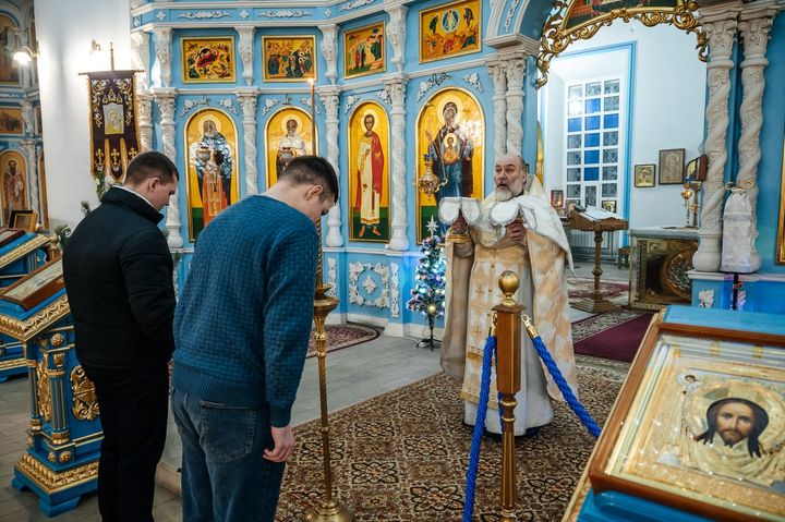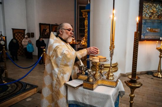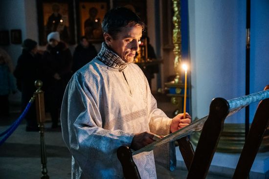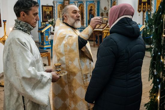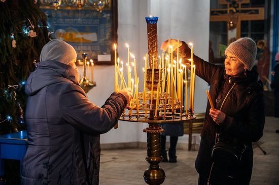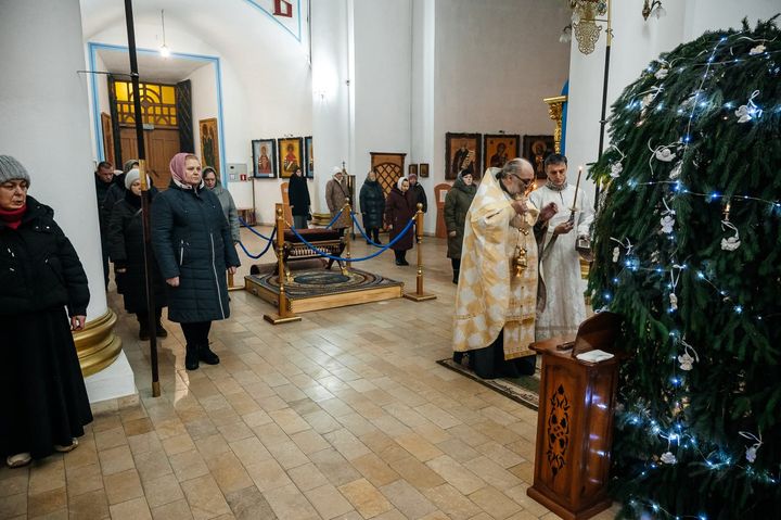 С 6 по 7 января, в праздник Рождества Господа и Спаса нашего Иисуса Христа, настоятель Успенского кафедрального собора города Рыльска протоиерей Александр Харин совершил великое повечерие, утреню и Божественную литургию святителя Иоанна Златоуста.